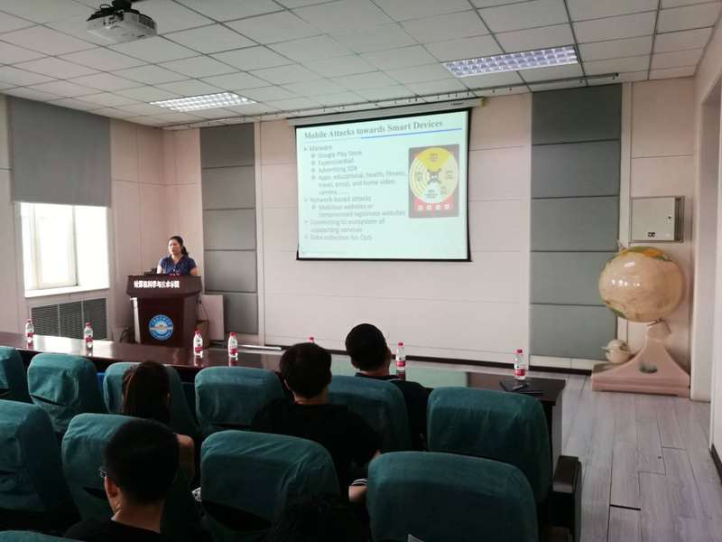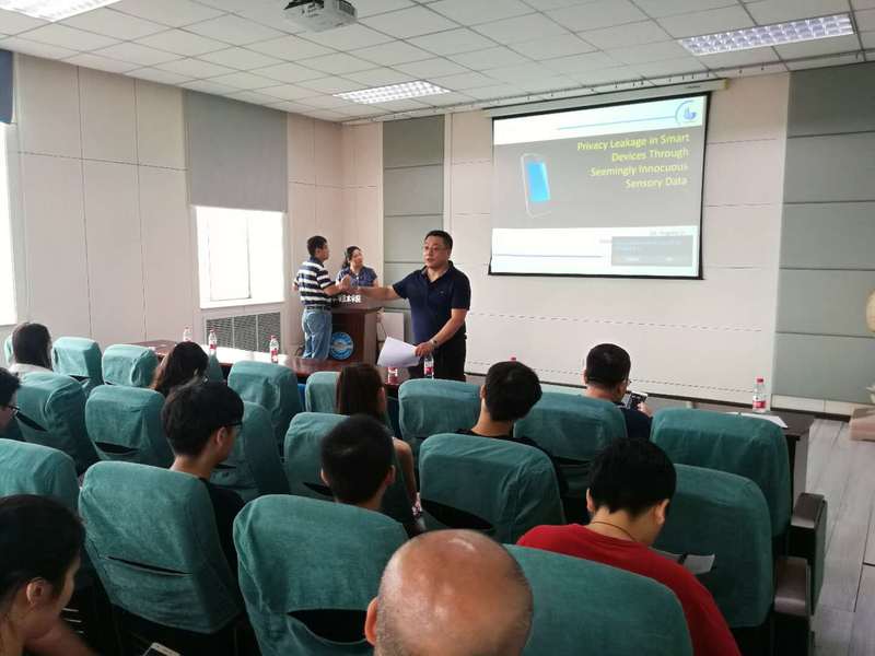 首先,科研副院长韩启龙教授向与会人员介绍李教授简历,针对学院与佐治亚州立大学在学生培养、科学研究等方面开展的合作进行了回顾和展望,并就交流内容向与会人员进行了提醒,要求双方交流要紧密围绕学术、科研开展。李教授结合其实验室目前的研究内容展开讲解,从数据隐私保护的重要性、研究背景、研究方案等方面详细的说明了当前移动设备安全保护方面的漏洞和急需解决的问题。报告环节之后,李教授同与会人员开展互动交流,与会教师同学踊跃提问,李教授均一一耐心回答,本次学术报告使开云官网师生及时了解到国际最新研究动态,对开展科研工作起到积极的促进作用。
