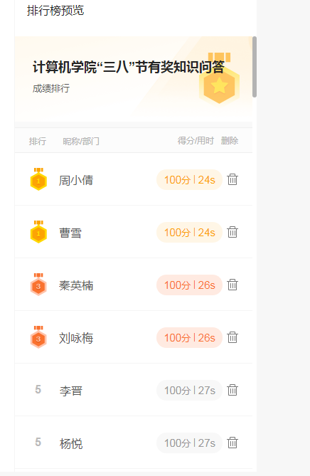 有奖知识问答(线上)活动以手机问卷星答题链接形式开展,学院共有56名女教工全部参加该项活动,答题平均分数高达83.04,学院精心为每一位参与女教工发放活动纪念品一份。
