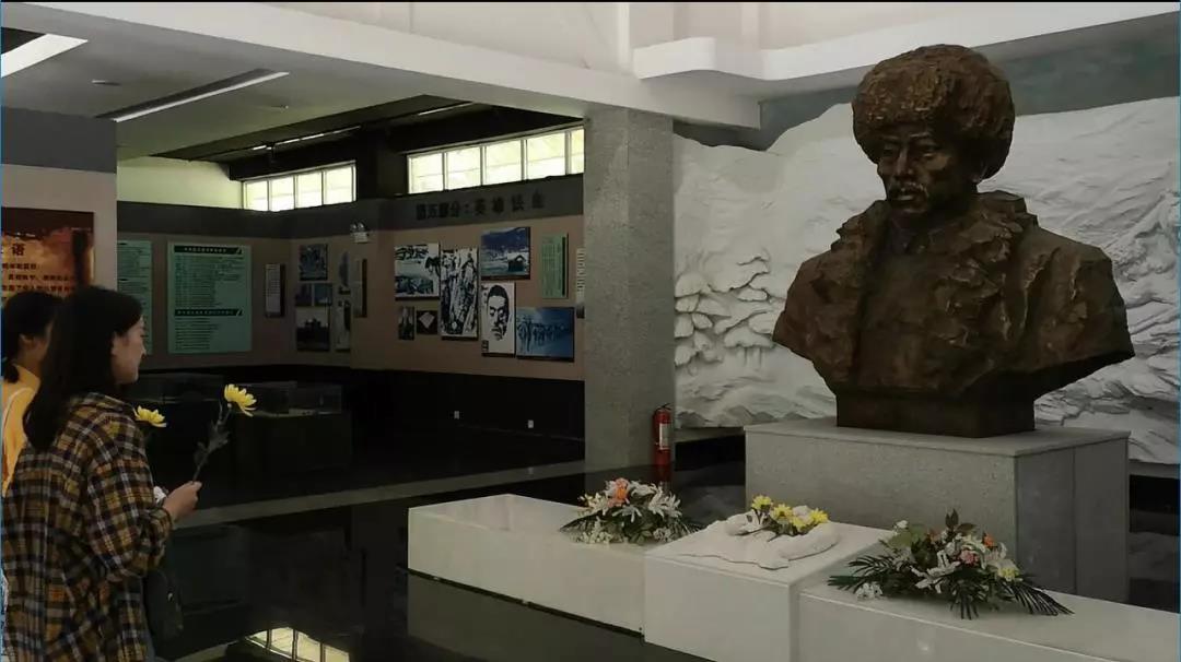 走进展馆,正厅中央安放杨靖宇将军铜铸胸像,经李老师介绍得知,铜像基座高918mm,象征开始抗日的“九一八”事变。铜像后的墙面是一组白色高浮雕,再现了杨靖宇将军带领东北抗日联军转战在白山松水之间,沉重打击日本侵略者的战争场景。