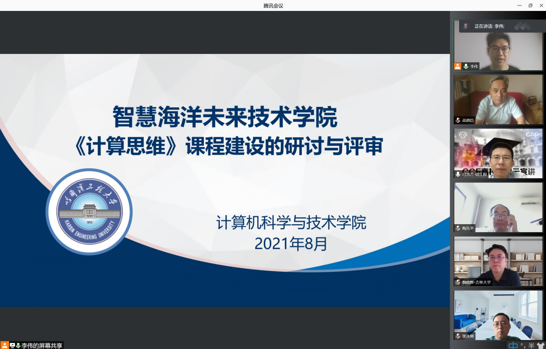 2021年8月8日下午3点,学院在线上组织召开“计算思维”课程建设评审会,对即将在未来学院开设的“计算思维”课程进行评审,评审专家有哈尔滨工业大学战德臣教授、南京大学陶先平教授、吉林大学魏晓辉教授、吉林大学张永刚教授。开云官网院长蔡成涛教授、未来技术学院常务副院长张勇刚教授、课程负责人印桂生教授以及“计算思维”课程团队全体教师参会,会议由教学副院长冯光升主持。