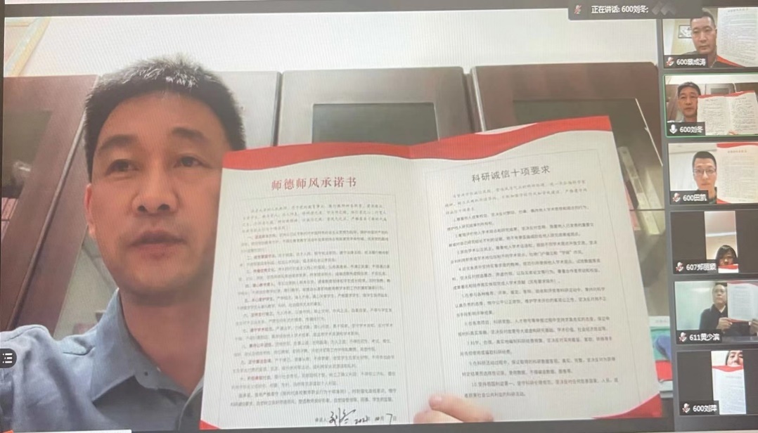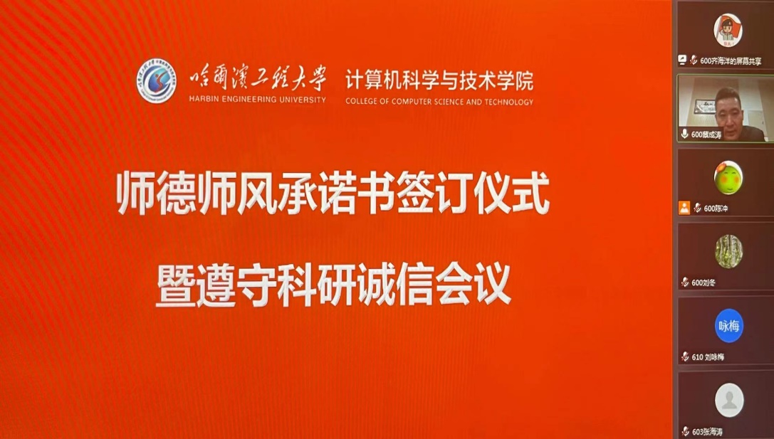 为切实加强教职工职业道德水平和诚信科研素养,贯彻落实教育部、学校关于师德师风建设、诚信科研工作要求, 2021年10月9日,kaiyun开云官方《师德师风承诺书》签订仪式暨遵守科研诚信会议于线上召开。会议由计算机学院党委书记刘冬主持,计算机学院院长蔡成涛会上做了交流发言,学院全体教职工参加会议并共同做出立德树人承诺。