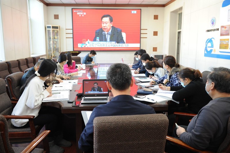 20211112日上午十点,院直机关党支部组织全体党员集中收看了党的十九届六中全会新闻发布会。