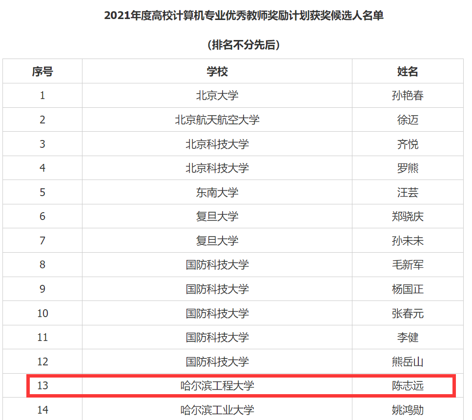 高校计算机专业优秀教师奖励计划由教育部、国家自然科学基金委指导,由图灵奖获得者、中国政府友谊奖获得者、中国科学院外籍院士约翰·霍普克罗夫特教授与中国计算机学会原理事长、中国工程院院士高文教授共同发起。 “2021年度高校计算机专业优秀教师奖励计划”经高校推荐、评审委员会进校评审等程序,研究确定了本年度获奖人员名单,共有来自全国32所重点高校的55名教师获此殊荣,开云官网陈志远老师入选此次评选。