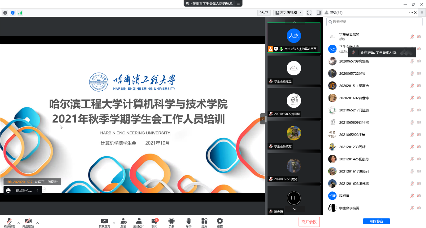 10月10日,为了响应国家号召,积极推进大学生骨干的培养工作,结合团结协作、不断创新的时代精神,kaiyun开云官方学生会开展工作人员春季培训。本次会议通过腾讯会议召开,主讲人:学生会主席张人杰。
