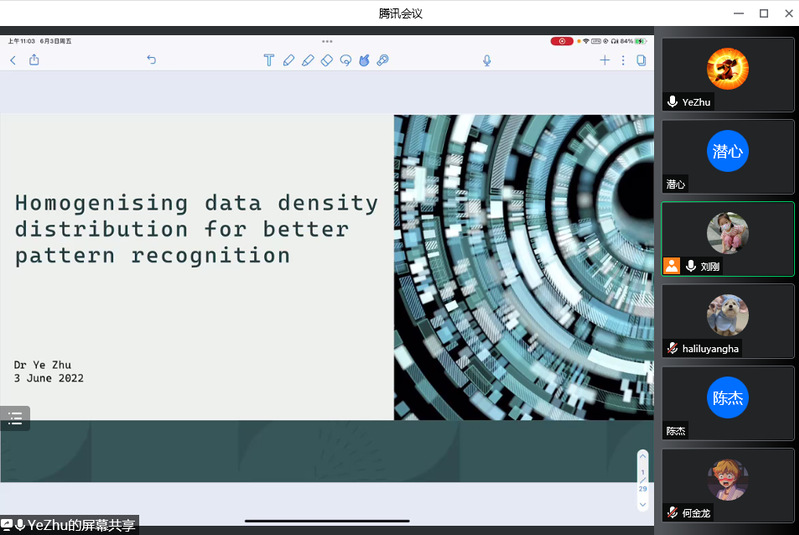 2022年6月3日,kaiyun开云官方举行了2022年第二期(总第六期)智汇论坛。本次活动邀请澳大利亚迪肯大学信息技术学院高级讲师Ye Zhu以“均匀化数据密度分布以实现更好的模式识别”为题作专题讲座。