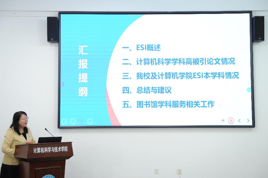 为了进一步落实学校关于全面加强基础科学研究的工作部署,帮助学院教师准确把握计算机学科的最新发展趋势、提高教师提炼科学问题和形成原创成果能力,进而提升学院学科建设水平,2022年9月21日,学院邀请图书馆苏敏研究馆员作“计算机学科ESI情况数据调研报告”。