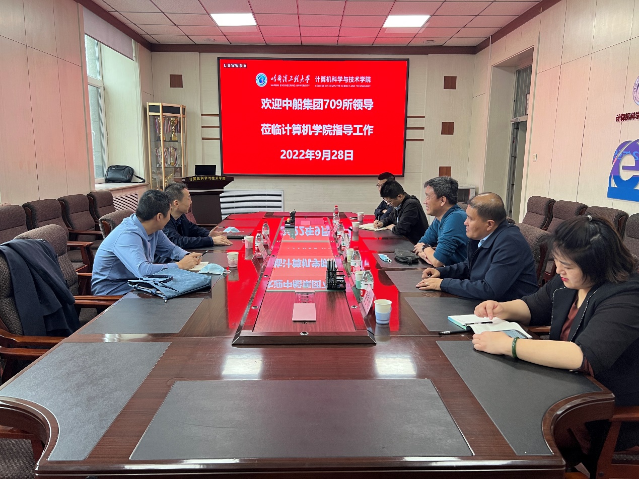学院党委书记刘冬致欢迎词,刘书记代表学院对中船集团709所2位领导的来访表示欢迎,刘书记指出计算机学院与中船集团709所双方合作历史久远,曾共同开展博士一级学科申报,博士后流动站申报等相关合作,对双方以往合作给予充分的肯定和高度评价。中船集团709所领导表示,本次来访以校园招聘为切入点,真切希望校所双方可以增进交流,实现校所需求精准对接,优势资源汇集。与会同时王巍副院长介绍学院科研情况、冯光升副院长重点介绍硕博联合培养情况。