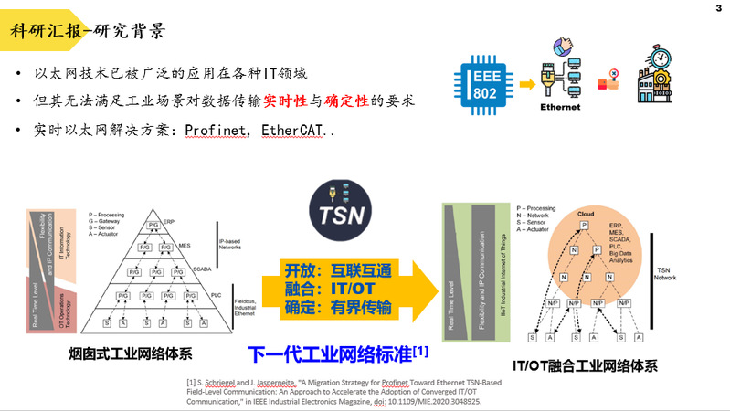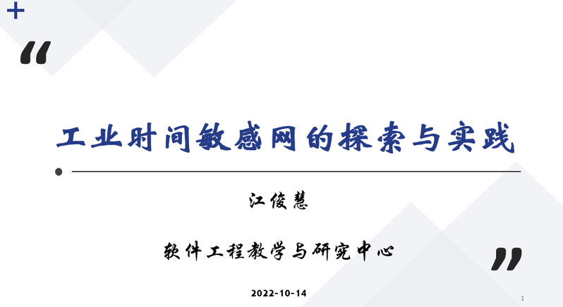 江俊慧老师主要研究方向为工业物联网、智能制造、时间敏感网与边缘计算。本次报告主要介绍了时间敏感网TSN相关背景知识,TSN的产业图谱,以及TSN在工业场景中的两类应用,包括TSN与OPC UA技术的结合和TSN在工业4.0典型案例中的表现,同时,介绍了TSN流量调度算法。