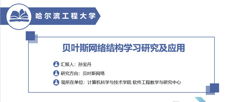 孙宝丹老师主要研究方向为贝叶斯网络结构学习和因果推断等。本次报告主要介绍了贝叶斯网络的原理和当前贝叶斯网络研究中涉及到的主要问题,同时给出了贝叶斯网络在疾病诊断、无人机方面的应用场景和案例。