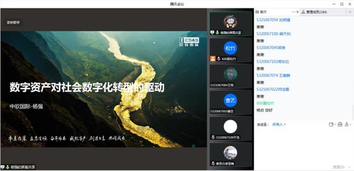 杨强副院长报告题目为“数字资产对社会数字化转型的驱动”,本次报告就数字经济的历史使命和时代背景、中国数字产业的发展情况,以及信创产业的典型应用示例场景进行了介绍。最后,报告为同学们提出了当前新智能产业领域依然存在问题的思考。