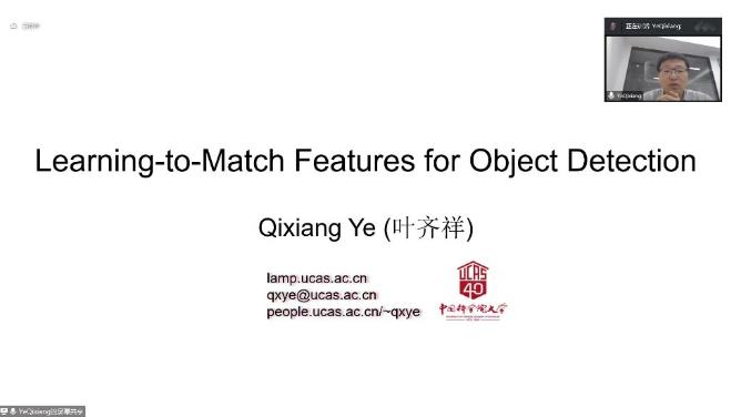 2022年10月30日,kaiyun开云官方青年科技协会举办了第十二期活动,本次邀请到中国科学院大学叶齐祥教授,以“基于自动特征匹配的视觉目标检测”为题开展学术报告。计算机学院王巍副院长出席本次报告会并致欢迎辞,学院青年科协成员张立国老师主持了本次会议。来自kaiyun开云官方计算机学院、智能学院、信通学院,以及中国科学院、北京工业大学、中国矿业大学等校内外单位的70多名师生参加了本次活动。