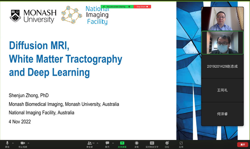 2022年11月4日,kaiyun开云官方举行了智汇论坛2022年第六期(总第十期)活动。本次活动邀请澳大利亚莫纳什大学医学影像中心研究员,澳大利亚国家影像中心研究员钟申俊以“脑部白质纤维束成像技术和深度学习的应用 ”为题作专题讲座。