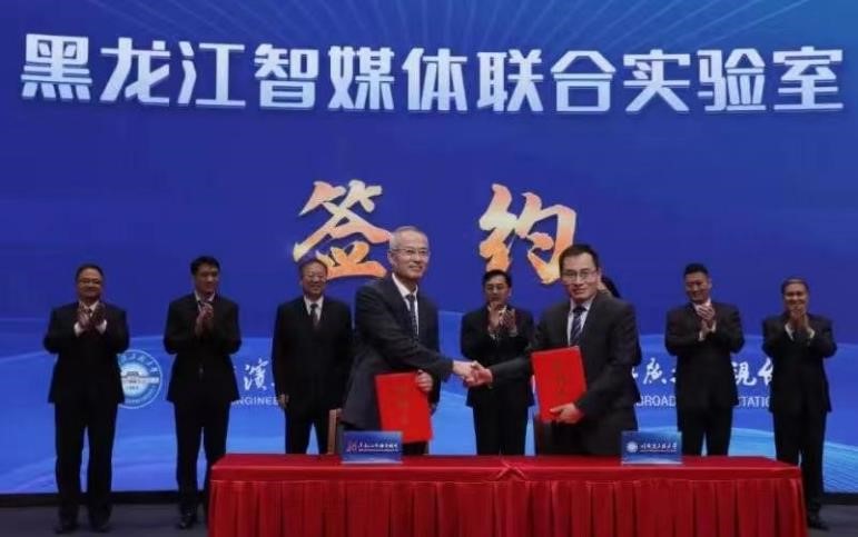 2022年10月28日,我省首家校媒合作实验室“黑龙江智媒体联合实验室”启动仪式在黑龙江省电视台举行,该实验室由我校依托开云官网和黑龙江广播电视台共同建立。省委宣传部副部长、黑龙江广播电视台党组书记、台长王永石和校党委书记高岩分别致辞,党委常委、副校长於志文与黑龙江广播电视台总工程师马晓波代表两家单位共同签署合作协议。学院院长蔡成涛,科研副院长王巍参加了此次启动仪式。