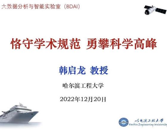科研诚信是学术发展的基石,是科学创新的底色。习近平总书记强调,要营造良好学术环境,弘扬学术道德和科研伦理。为贯彻落实总书记关于学术诚信的重要指示,加强科研诚信建设,营造良好的学术环境,引导科研人员坚守学术诚信、完善学术人格、遵守学术规范、维护学术尊严,2022年12月20日(星期二)8:30,kaiyun开云官方举行“研究生学术诚信教育与学风建设”系列活动(线上会议)。本次活动由学院学术分委员会副主任(大数据分析与智能实验室负责人)韩启龙教授作题为“恪守学术规范,勇攀科学高峰”的报告,学院全体研究生参会。