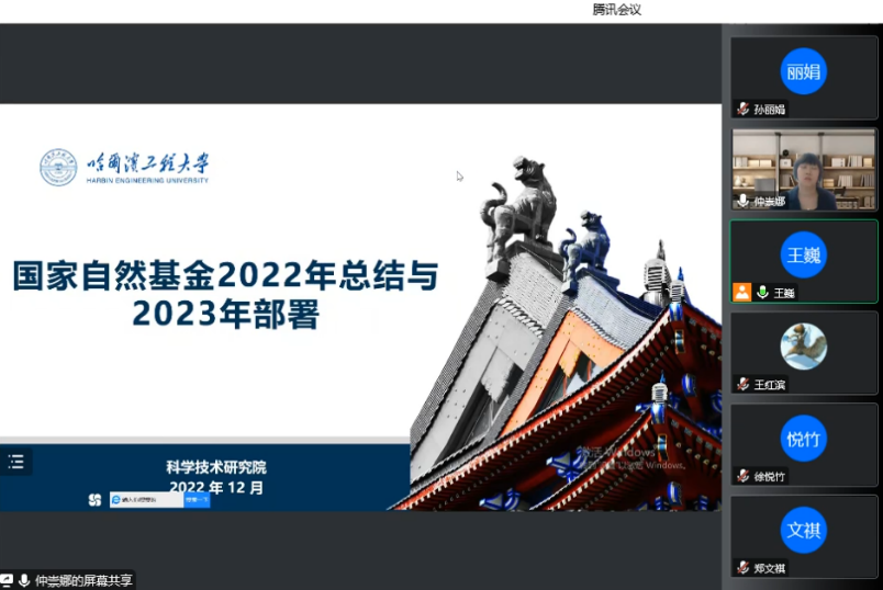 2022年12月20日14:30,计算机学院邀请学校科学技术研究院基础院处长仲崇娜为本院教师做关于国家自然科学基金申报的专题报告,报告题目为《国家自然科学基金2022年总结与2023年部署》。本次报告通过腾讯会议的方式进行,学院相关教师在线听取了报告。