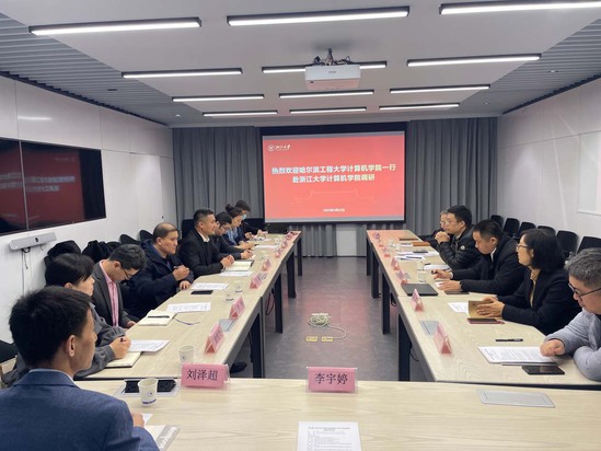 在浙江工业大学调研中,调研团首先参观了浙工大中控信息智慧交通联合创新实验室和智能感知与系统教育部工程研究中心。调研会上,浙江工业大学计算机学院院长梁荣华介绍了学院组织机构设置、师资队伍建设、教学科研成果、学科评估情况、科研方向、教学名师培育计划等,蔡成涛院长对学校和学院情况进行了介绍。双方就新教师考核、专业硕士入企、教师考核机制、一站式学生社区建设、青年教师培育、科研团队激励政策等内容进行了交流。浙江工业大学计算机学院副院长沈国江、党委副书记毛诗焙、网络工程系主任李燕君、计算机科学与技术系主任汤颖、办公室副主任陈婉君、团委书记张苗苗等参加了此次调研会。