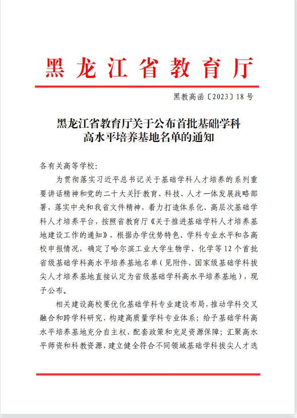 近日,在黑龙江省教育厅发布的《首批基础学科高水平培养基地名单的通知》中有12所高水平培养基地入选,开云官网“计算机科学高水平培养基地”榜上有名。