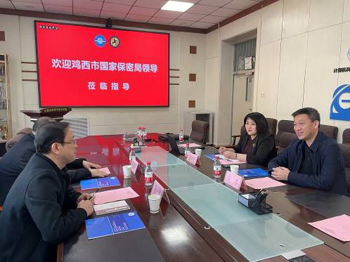 3月31日上午,鸡西市国家保密局副局长张强、密保中心主任高骞琛一行来我校国家保密学院调研座谈。计算机学院党委书记刘冬、国家保密学院副院长董宇欣、院直机关相关教师出席了会议。