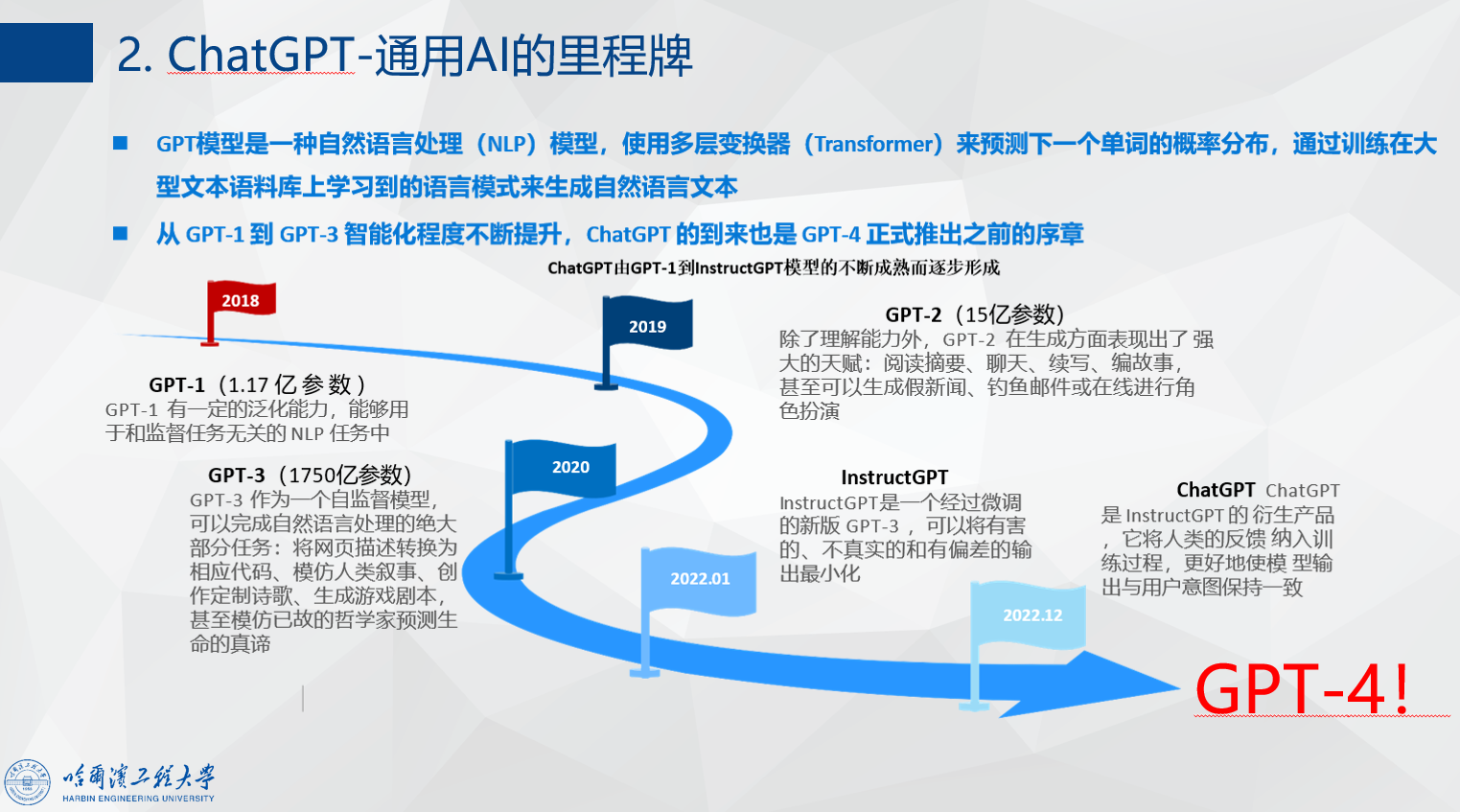 计算机学院李熔盛老师作为引导发言嘉宾,以“ChatGPT的前世今生”为题为大家详细介绍了从ChatGPT到ChatGPT4这一AI里程碑通用系统的发展。李老师从专业角度对ChatGPT的技术路线进行了拆解,介绍了ChatGPT是如何提升理解人类思维的准确性,同时,对ChatGPT对人类、就业环境、教育工作的威胁与挑战进行了讲述,对大模型研究提出了独到的见解。