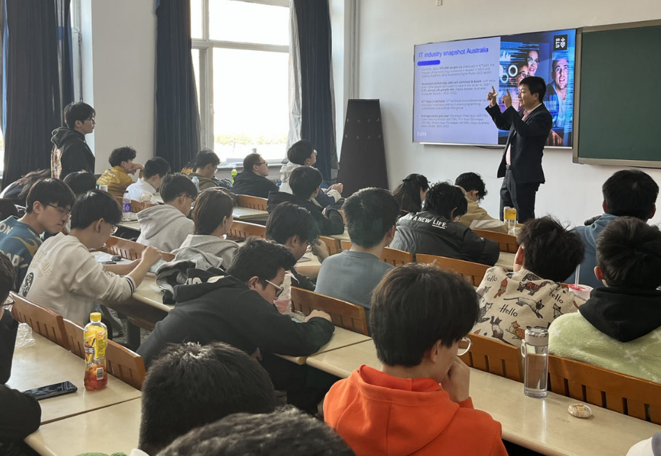 学院于21B1078教室组织宣讲会,董宇欣主持会议。会上马良为计算机学院、软件学院2020级和2021级学生介绍了悉尼科技大学的“3+1+1”国际交流项目、学科优势、科研氛围及生活环境,表示将为学生提供广泛的发展平台和机会。宣讲过程中,同学们认真聆听了宣讲内容,对有兴趣的内容进行了提问,并有部分同学表示抱有出国交流意向。