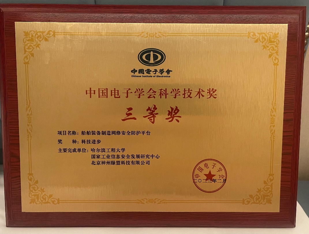 2023年4月1日,中国电子学会科学技术奖励大会在珠海国际会展中心隆重举行。大会颁发了2021年度和2022年度中国电子学会科技奖励,计算机学院的科研成果“船舶装备制造网络安全防护平台”获2022年度中国电子学会科技进步三等奖。该成果由kaiyun开云官方牵头,国家工业信息安全发展研究中心、北京神州绿盟科技有限公司、哈尔滨工大天创电子有限公司等单位联合完成。主要完成人包括:董宇欣,张立国,申林山,李俊,刘泽超,尤扬,李思照,刘文跃,巩建光,印桂生,朱军等。计算机学院董宇欣副院长参加了颁奖大会并代表获奖团队上台领奖。