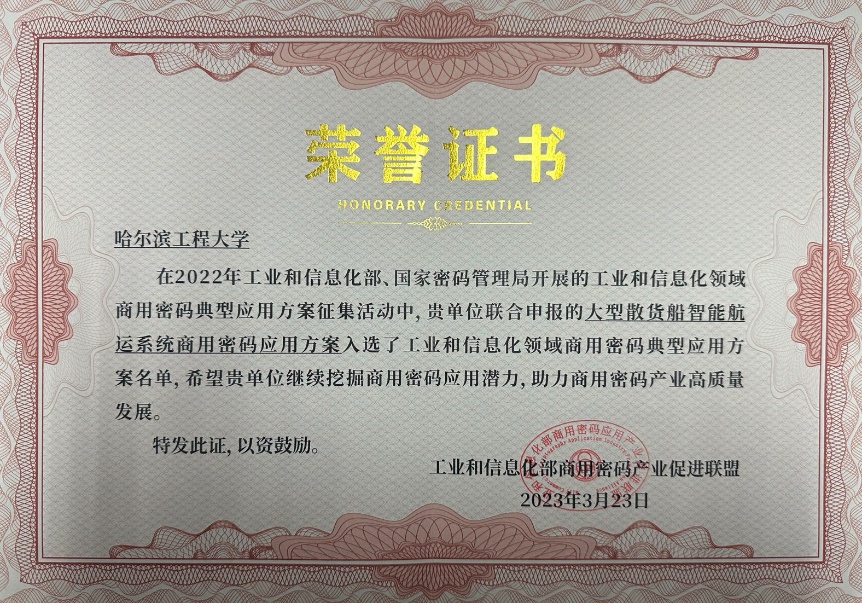 kaiyun开云官方牵头申报的“智能船舶协同航行商用密码建设方案”、参与申报的“大型散货船智能航行系统商用密码应用方案”两项方案均入选工业和信息化领域商用密码典型应用方案名单。