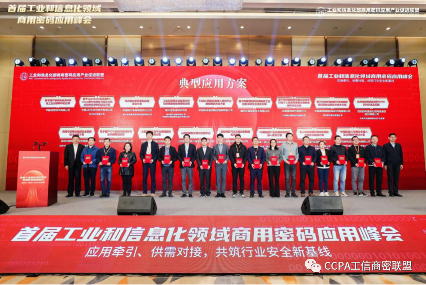 峰会期间,公布了由工业和信息化部、国家密码管理局组织遴选的100项工信领域商用密码典型应用方案,并为方案组织推荐单位颁发了证书。