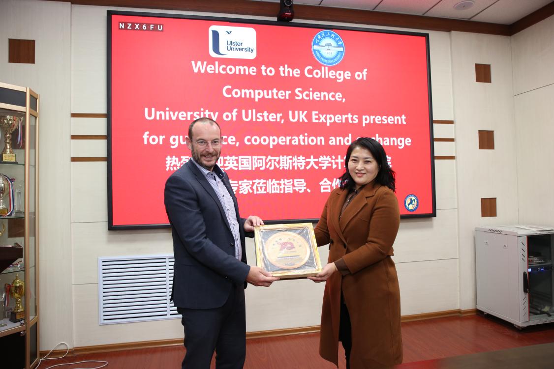 Christopher Nugenet就办校理念、组织架构,校企合作等方面详细介绍了英国阿尔斯特大学计算机学院的情况,并展示了学校的风采和学术成就。陈立明对英方学院研究中心的师资队伍、学术研究、创新成果等内容做了简要介绍。张帅就研究生招生、联合培养项目等方面进行了介绍。
