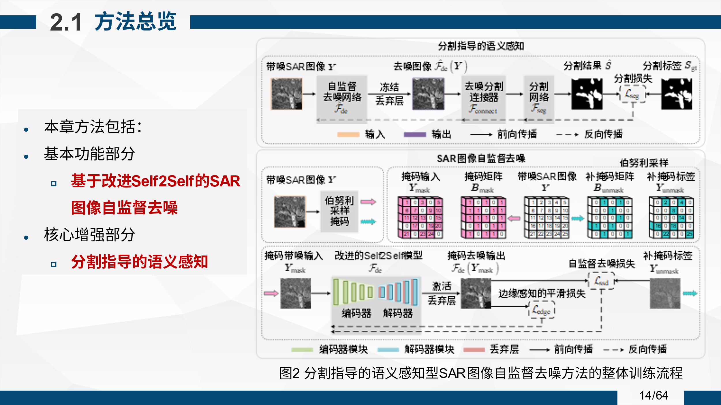 合成孔径雷达(Synthetic Aperture Radar, SAR)能够不受云层、雨雾或夜晚等自然条件的影响,在恶劣天气或低光条件下仍能可靠地获取地表信息。然而,SAR图像固有地受到斑点噪声的污染,影响了图像的视觉质量和信息解译。因此,抑制斑点噪声对于提高SAR图像的视觉质量和应用价值至关重要。现有自监督去噪方法通常在去噪同时对于细节特征的保护不足,为了解决这一问题,提出了一种分割指导的语义感知型SAR图像自监督去噪方法,能够使得自监督去噪网络在充分抑制斑点噪声的同时,有效保留纹理边缘等细节特征,从而有效提升SAR图像清晰度。