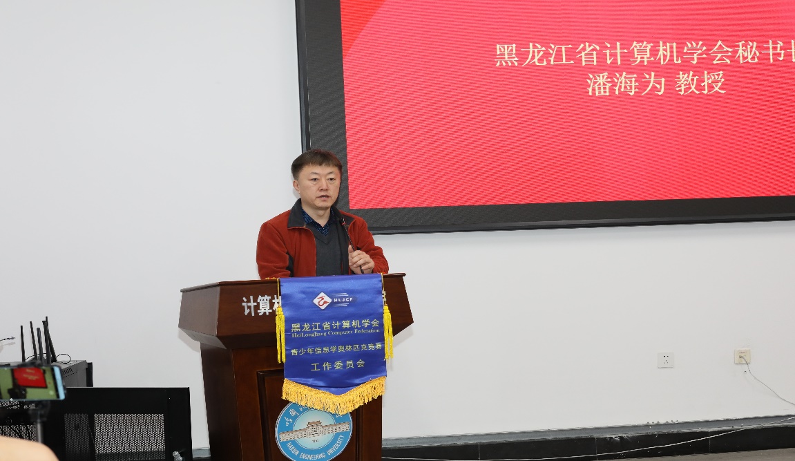黑龙江省计算机学会秘书长潘海为、黑龙江省计算机学会信奥工委主任委员王宇华、省实验中学教务处副主任、信息中心主任郭庆春,分别代表黑龙江省计算机学会、NOI信息学特派员、授课教师致辞。此次冬令营来自师大附中、省实验中学信息学奥赛优秀教师、获得全国赛奖牌选手及我校ACM赛队优秀队员担任讲师团成员。在接下来7天营期,讲师们将以寓教于乐的教学方式、沉浸式的学习氛围,通过组织营员自主学习和团队研讨,让每一位参加冬令营的营员都能体验一场奇妙编程之旅,追求自己的“编程梦想”。冬令营期间学院还安排营员参观校史馆、船舶博物馆及深哈科技园以及3场计算机科普讲座,可进一步开阔营员眼界。
