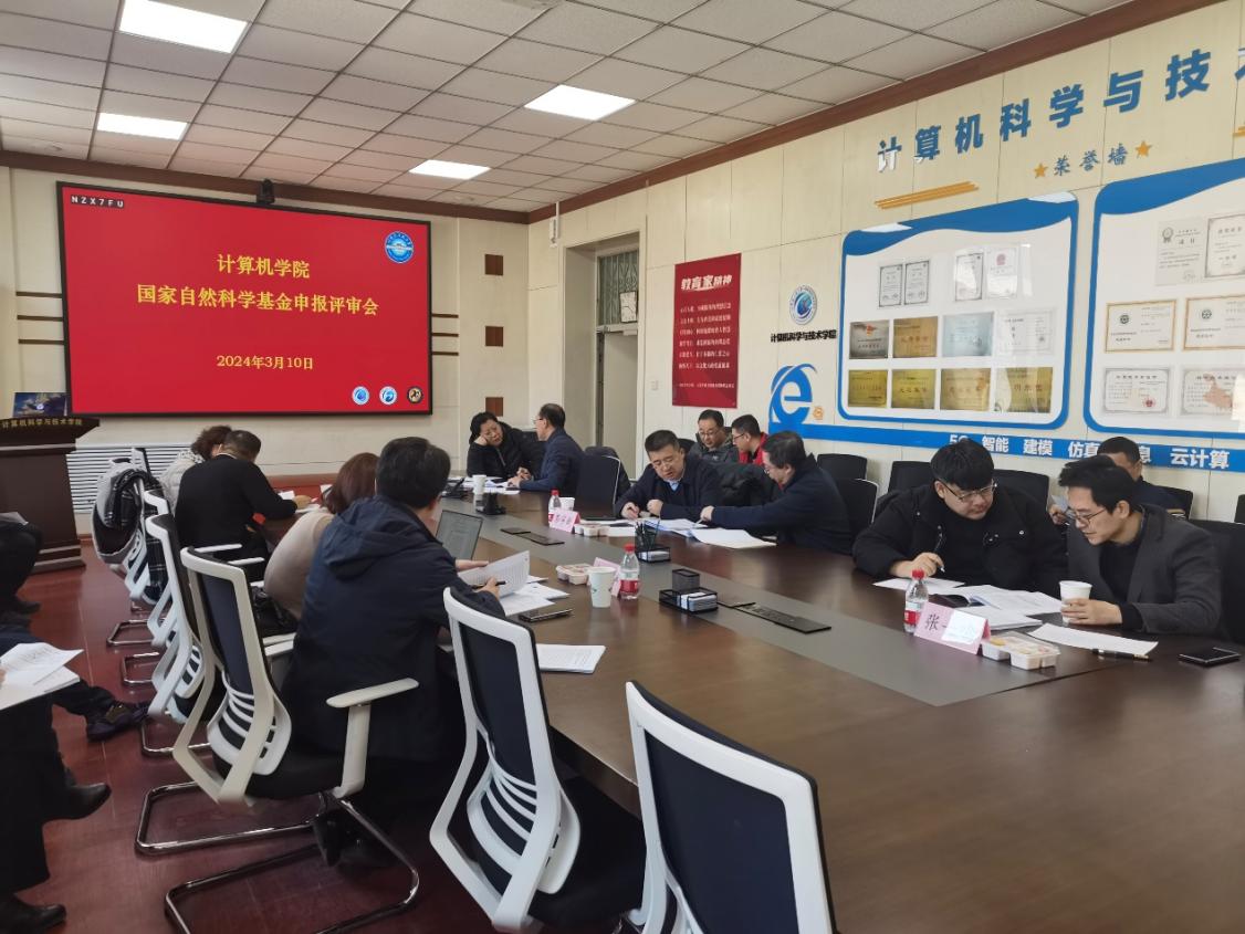 为做好学院2024年度国家自然科学基金申报工作,进一步提高国家自然科学基金申报质量,3月10日上午9时计算机学院在21号楼4017会议室举行2024年度国家自然科学基金评审会。评审专家为5位计算机领域国家级高层次人才,分别是郑州大学杨天若教授、北京大学彭宇新教授、天津大学胡清华教授、清华大学翟季冬教授以及厦门大学张一鸣教授。
