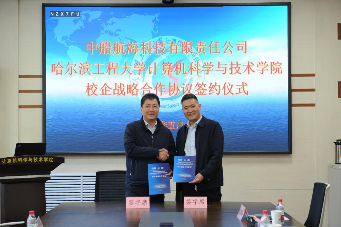 5月15日下午,kaiyun开云官方与中船航海科技有限责任公司,在21号楼4017会议室举行校企战略合作协议签约仪式。计算机学院院长蔡成涛、党委副书记、副院长吴艳霞、科研副院长苘大鹏、专务助理李熔盛、江俊慧、高质量发展办公室相关人员,中船航海科技有限责任公司党委书记、董事长张帜、党群人事部主任柳贵福、系统集成部主任耿建宁、信息产品部副主任王清哲、党群人事部人事干事靳明燕出席本次会议,签约仪式由计算机学院科研副院长苘大鹏主持。