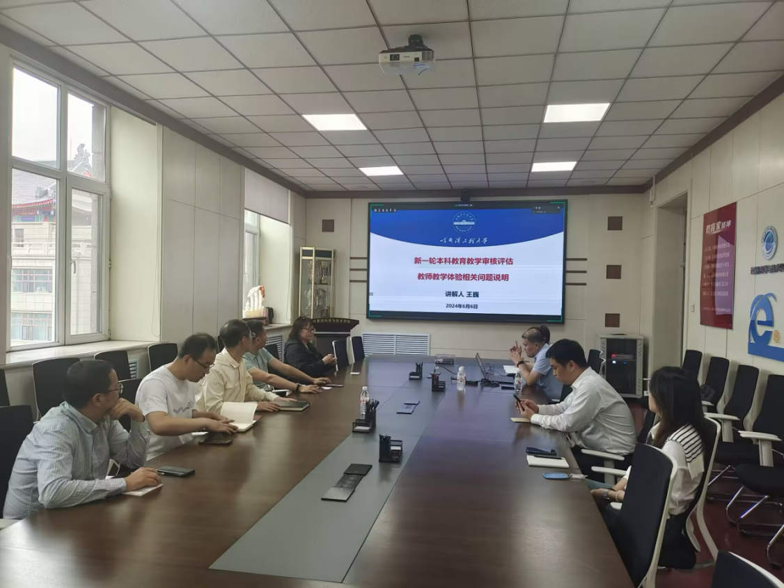 学院于10月9日即将迎来新一轮的本科教育教学审核评估,王巍副院长首先指出会议目的,随后为与会人员介绍了1+3+3报告的内容,其中重点围绕《教师教学体验调查报告》进行解读,关于报告的目的、调查方法、整体关注指标及注意事项分别展开详细介绍。指出本次评估问卷需专任教师参加。评估内容包括教师师德建设、教学能力、教育投入等方面。评估方式为电子问卷,要求在6月10日之前完成,并重点强调答题时要注意选项设置,避免出现无效答案等。