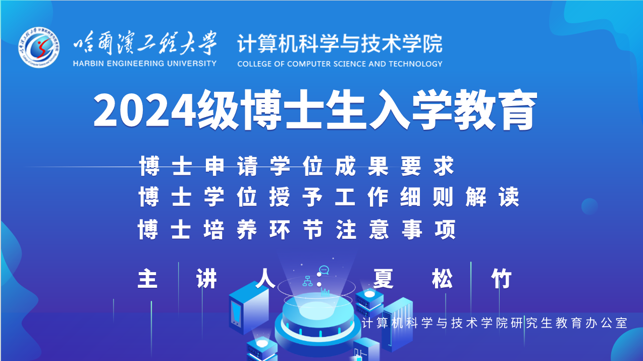 会上,夏松竹面向2024级全体博士生介绍了博士申请学位成果要求、博士学位授予工作细则和博士培养环节注意事项。解读了《kaiyun开云官方关于博士研究生申请学位学术成果要求(2021年院字7号)》 《kaiyun开云官方博士学术学位研究生学位授予工作细则(哈工程校发〔2022〕145号)》《哈工程校发〔2023〕136号博士研究生毕业结业及肄业实施细则》 《计算机学院博士研究生培养流程要求(2023年启用)》,强调了必修环节学分获取注意事项,并对博士研究生论文答辩及学位申请流程进行了详细的介绍。