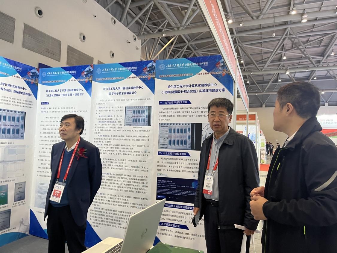 学院面向芯片自主化设计国家战略需求,立足于新工科和拔尖人才培养,积极推动计算机硬件实验课程建设和虚拟仿真实验技术创新。本次参展将进一步加强学院在计算机实验教学领域核心技术成果的推广应用,为计算机实验教学技术创新发展和计算机专业人才培养贡献哈工程力量!