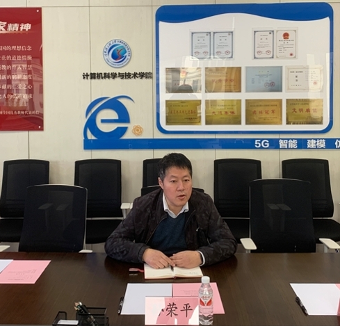 孙荣平对周启纲副总裁一行的到来表示热烈的欢迎,并从学院建院历史、学院特色、学科方向、专业情况、科研成果、保密技术等方面向调研组进行简要介绍,表示双方可就企业智能化升级、合作项目拓展、科技成果转化等多方面开展合作交流。