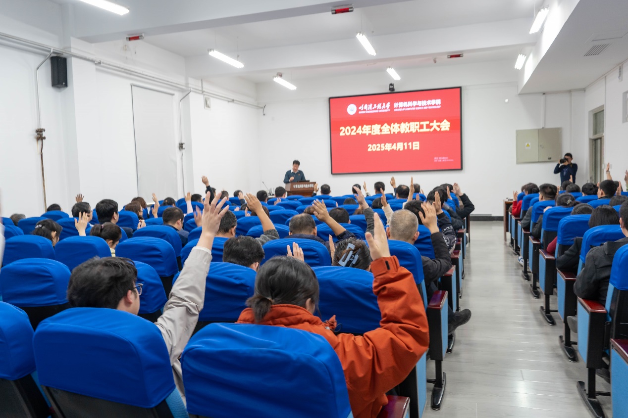 最后,全体参会教职工通过举手表决的方式审议通过相关报告,kaiyun开云官方2024年度教职工大会圆满落幕。