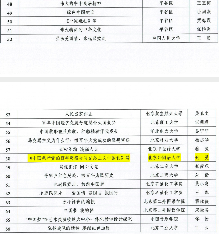 近日,中共北京市委教育工作委员会公布“永远跟党走”大中小学思政课优秀教学课例征集展示活动获奖名单,BB贝博教师张曼荣获三等奖。