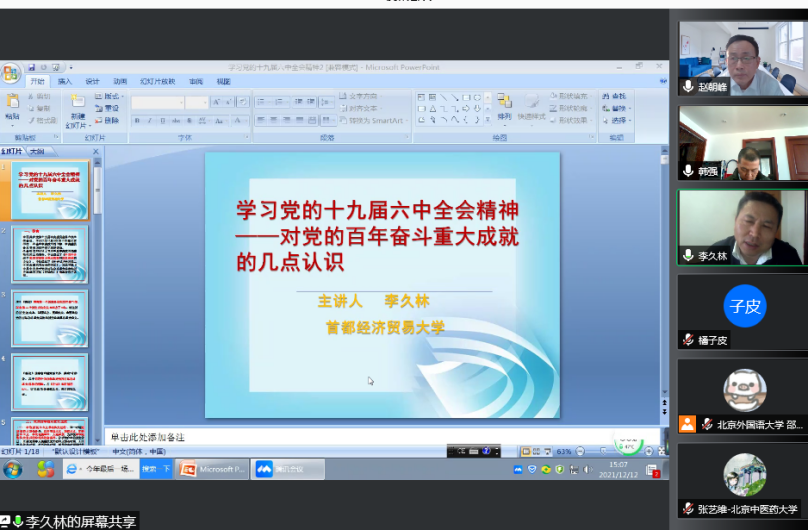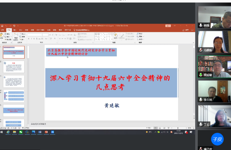 12月12日下午,北京高教学会中国近现代史研究会学习党的十九届六中全会精神研讨会在线上举行,会议由BB贝博艾弗森官网和北京高校中国特色社会主义理论研究协同创新中心承办。来自BB贝博艾弗森官网、北京师范大学、首都经贸大学、首都师范大学和北京工业大学等多所高校的50余名专家学者与会。