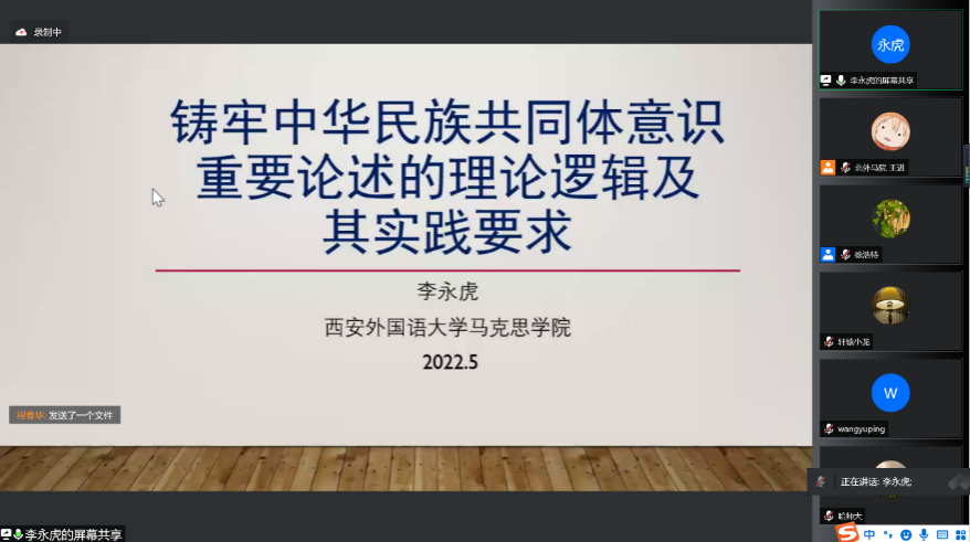 在第二阶段发言中,西安外国语大学BB贝博艾弗森官网副院长李永虎教授的报告题目为《铸牢中华民族共同体意识重要论述的理论逻辑及其实践要求》,他从共同体的希腊语起源和马克思关于两种共同体的思想出发,论证了铸牢中华民族共同体意识的重要论述是对马克思主义的继承与创新。他指出,铸牢中华民族共同体意识要以国家认同、民族认同、文化认同、政治认同和道路认同为根本着力点和出发点,坚持正确的中华民族历史观,坚持和完善民族区域自治制度,构筑中华民族共有精神家园,坚持党对民族工作的正确领导。