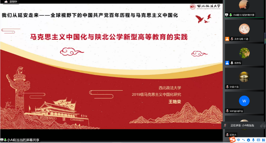 5月15日下午,“我们从延安走来——全球视野下的中国共产党百年历程与马克思主义中国化”学术研讨会分论坛“延安精神与新时代立德树人”在线上成功举行。中央民族大学BB贝博艾弗森官网院长孙英教授、大连外国语大学BB贝博艾弗森官网院长徐浩特教授分别主持了第一阶段与第二阶段的发言,校内外100余名专家学者及青年学生与会。