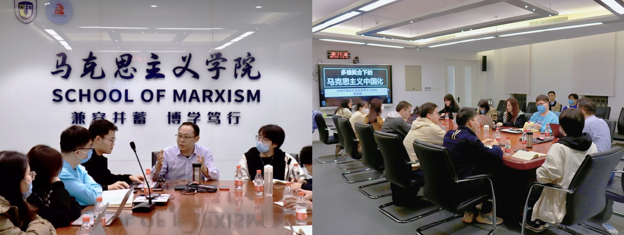 在马学马,在马读马,在马言马。为深入了解党的理论、发展和成就,真正搞清楚“中国共产党为什么能,中国特色社会主义为什么好,归根到底是马克思主义行,是中国化时代化的马克思主义行”,学院于10月26日开展“多维契合下的马克思主义中国化”主题读书会。李永乐老师通过“怀疑——追问——澄清”的逻辑带领大家多维探讨马克思主义推动中国革命、建设和改革的发展历程和契合之处,引导大家深入思考马克思主义何以能在中国大地扎根、开花、结果。现场气氛热烈,同学们积极表达自己的观点和体会,李永乐老师也鼓励大家树立问题意识,敢于追问,刨根问底,培养和树立研究型思维。