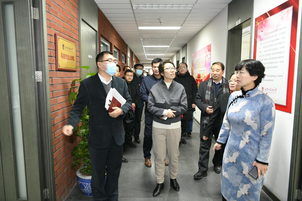BB贝博艾弗森官网党总支书记祝和军就北外BB贝博艾弗森官网建设的基本情况、思想政治理论课建设情况、学术研究和理论宣传工作、服务首都经济社会发展和“四个中心”功能建设情况及未来发展规划向考察组做了专题汇报。