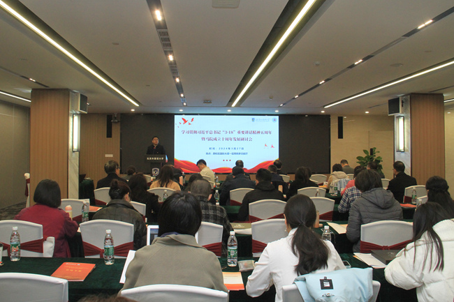 3月27日,北外召开学习贯彻习近平总书记“3·18”重要讲话五周年暨北外马院成立十周年发展研讨会。党委书记王定华,党委常委、副校长贾德忠,北京市委教育工委宣教处处长于海出席会议并致辞。北外各职能部门代表、兄弟高校马院院长,师生代表共80余人参加会议。会上,学校发布《BB贝博艾弗森官网北京市重点建设BB贝博艾弗森官网三年行动计划(2024-2026年)》,北外公众号刊发《铸魂育人 五年纪实》宣传报道,对BB贝博艾弗森官网近五年的工作进行了全面总结,进一步明确了未来三年的发展目标和建设任务。
