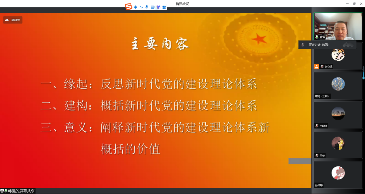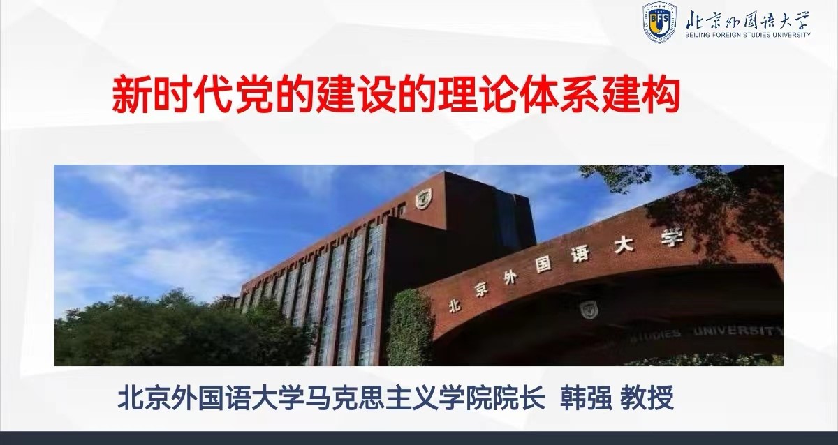 5月26日下午,北外马院马克思主义论坛第十四期在线上成功举办。BB贝博艾弗森官网院长韩强教授以“新时代党的建设的理论体系建构”为题做了专题讲座。本次论坛由2021级硕士研究生刘心成主持,共有包括北外马院师生在内的一百余人参会。