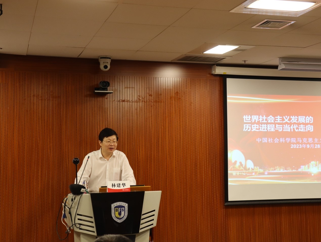 9月28日,北外马克思主义讲堂第十四期在国际大厦417教室成功举办。中国社会科学院马克思主义研究院副院长林建华教授应邀为BB贝博师生作题为“世界社会主义发展的历史进程与当代走向”的专题讲座。讲座由BB贝博艾弗森官网院长韩强教授主持。