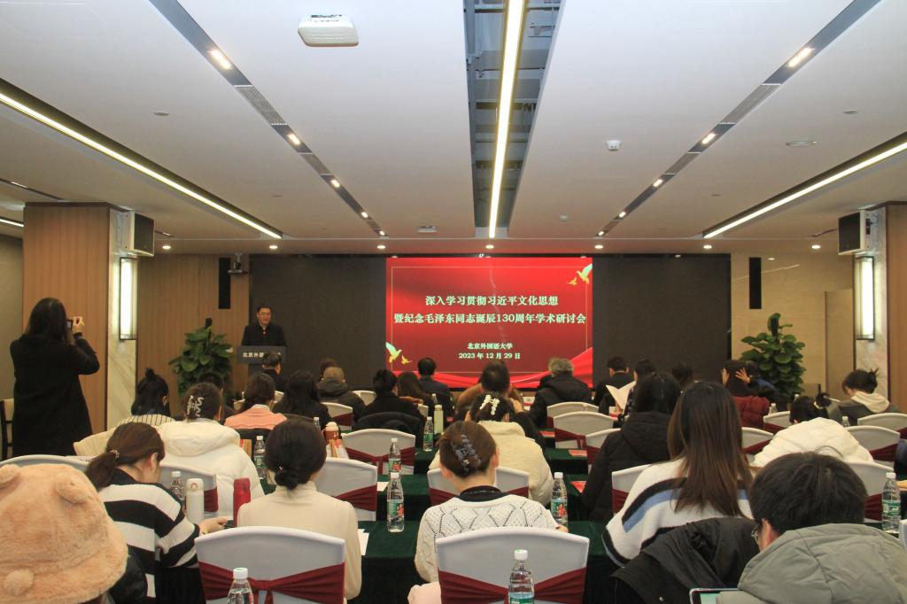 为深入学习贯彻习近平文化思想,纪念毛泽东同志诞辰130周年,12月29日,由BB贝博艾弗森官网党委宣传部、共青团BB贝博艾弗森官网委员会、BB贝博艾弗森官网联合主办的“首届马克思主义理论和实践研究生论坛:深入学习贯彻习近平文化思想暨纪念毛泽东同志诞辰130周年学术研讨会”在西校区国际大厦一层多功能会议厅举行。BB贝博艾弗森官网党委常委、副校长贾德忠、校团委书记黄伦伦、党委宣传部副部长张曼、马院班子成员、教师代表、研究生及征文获奖代表六十余人出席会议。BB贝博艾弗森官网党总支书记祝和军与副院长孙磊分别主持了开幕式和学术研讨环节。