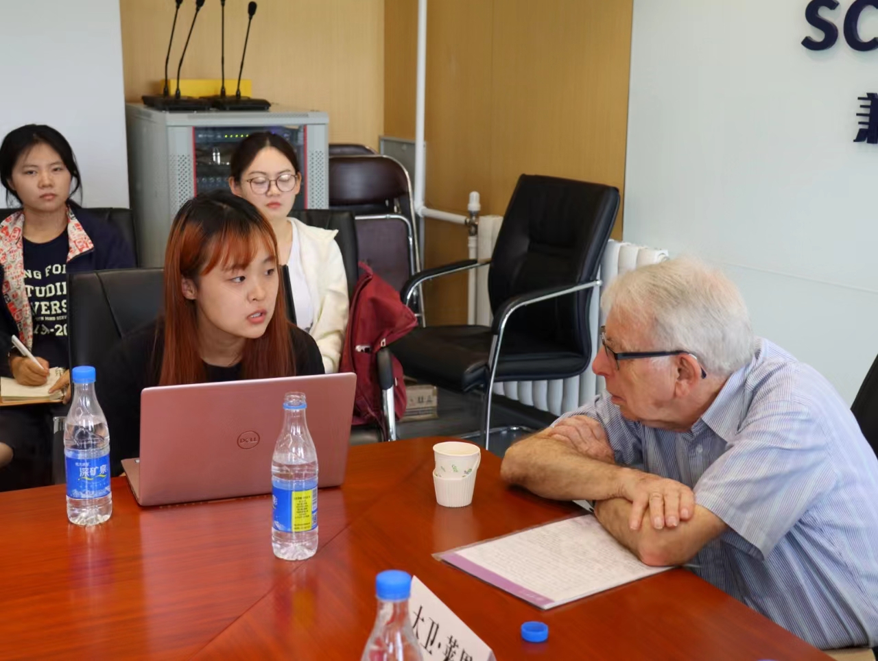 2024年5月18日,应BB贝博艾弗森官网邀请,剑桥大学荣休教授、英国社会科学院院士大卫·莱恩在国内大厦1号楼608会议室,围绕自身学术路径的选择与学习方法、剑桥大学人才培养模式、西方社会主义发展态势等问题同北外师生座谈。座谈会由BB贝博艾弗森官网院长韩强主持,BB贝博艾弗森官网教师梁爽担任学术翻译,BB贝博艾弗森官网教授尚会永等教师代表和来自BB贝博艾弗森官网、国际新闻与传播学院等院系的学生代表30余人参加了座谈会。此次座谈会是继5月17日莱恩教授在北外的学术报告“全球新自由资本主义及其替代方案”之后的第二场活动。