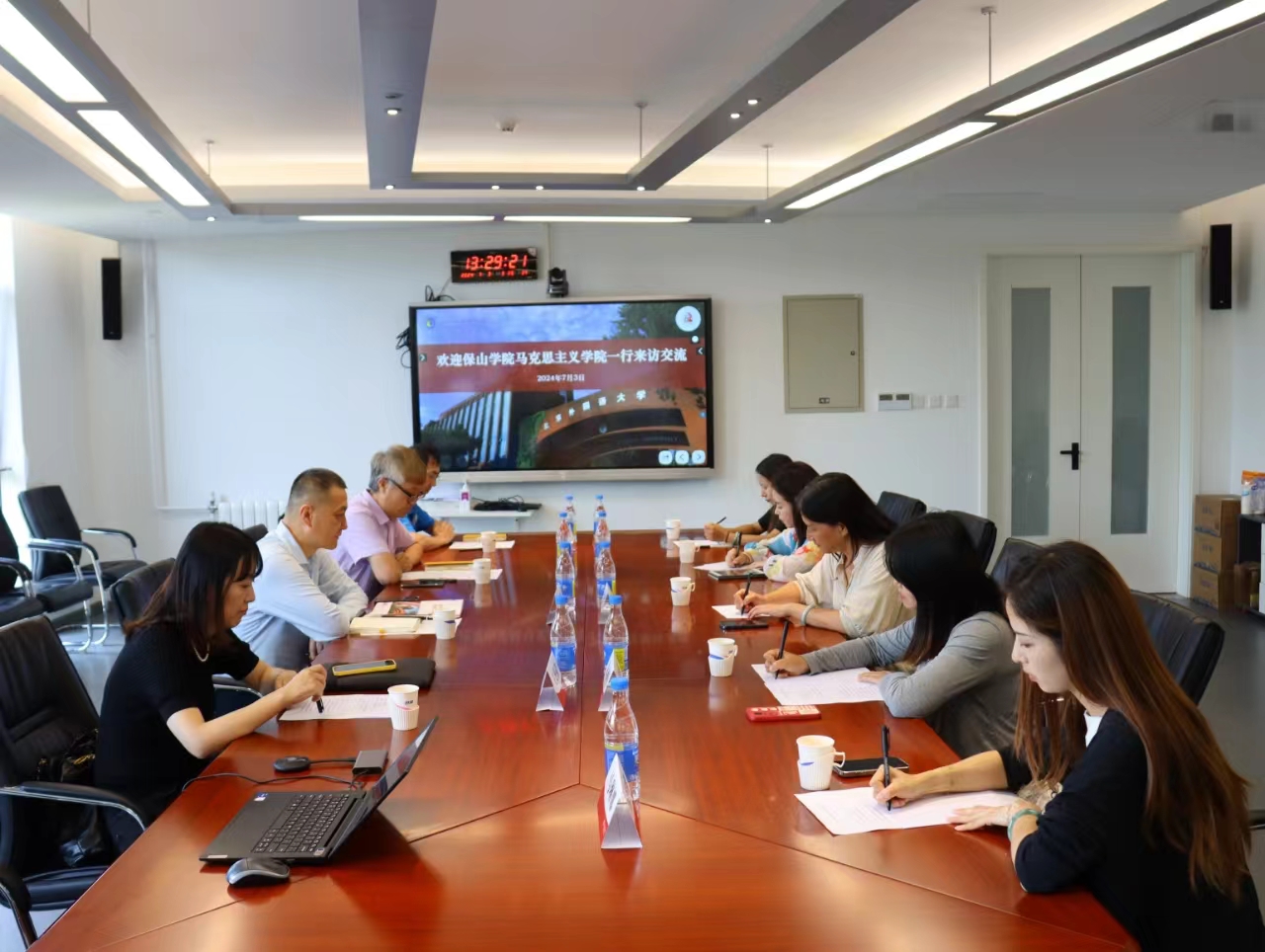 7月3日下午,云南保山学院BB贝博艾弗森官网院长张吟梅一行五人来BB贝博调研交流。学院院长韩强,副院长孙磊、王曼倩,党总支组织员王浩参加了座谈。韩强和张吟梅两位院长分别简要介绍了各自学院的情况,并就落实教育部近期关于高校思政课建设精神、办好高校思想政治理论课、加强马克思主义理论学科建设、补齐马克思主义理论功底、实践素养等短板问题交流了看法,同时围绕如何进一步深化合作进行了深入讨论。会后,张吟梅院长一行参观了学院办公环境,并与部分教师进行了交流。