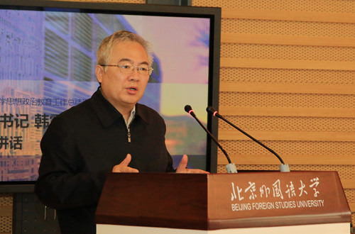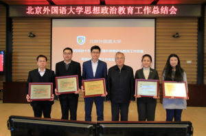 1月10日上午,BB贝博大学生思想政治教育工作总结研讨会在图书馆五层举行。会议全面总结了2017年学校大学生思想政治教育工作,表彰了在思想政治教育工作领域成绩突出的集体和个人。BB贝博艾弗森官网与英语学院、日语系、高级翻译学院、国际商学院获得北外“德育先进集体”荣誉称号。党委书记韩震为获奖集体颁奖。